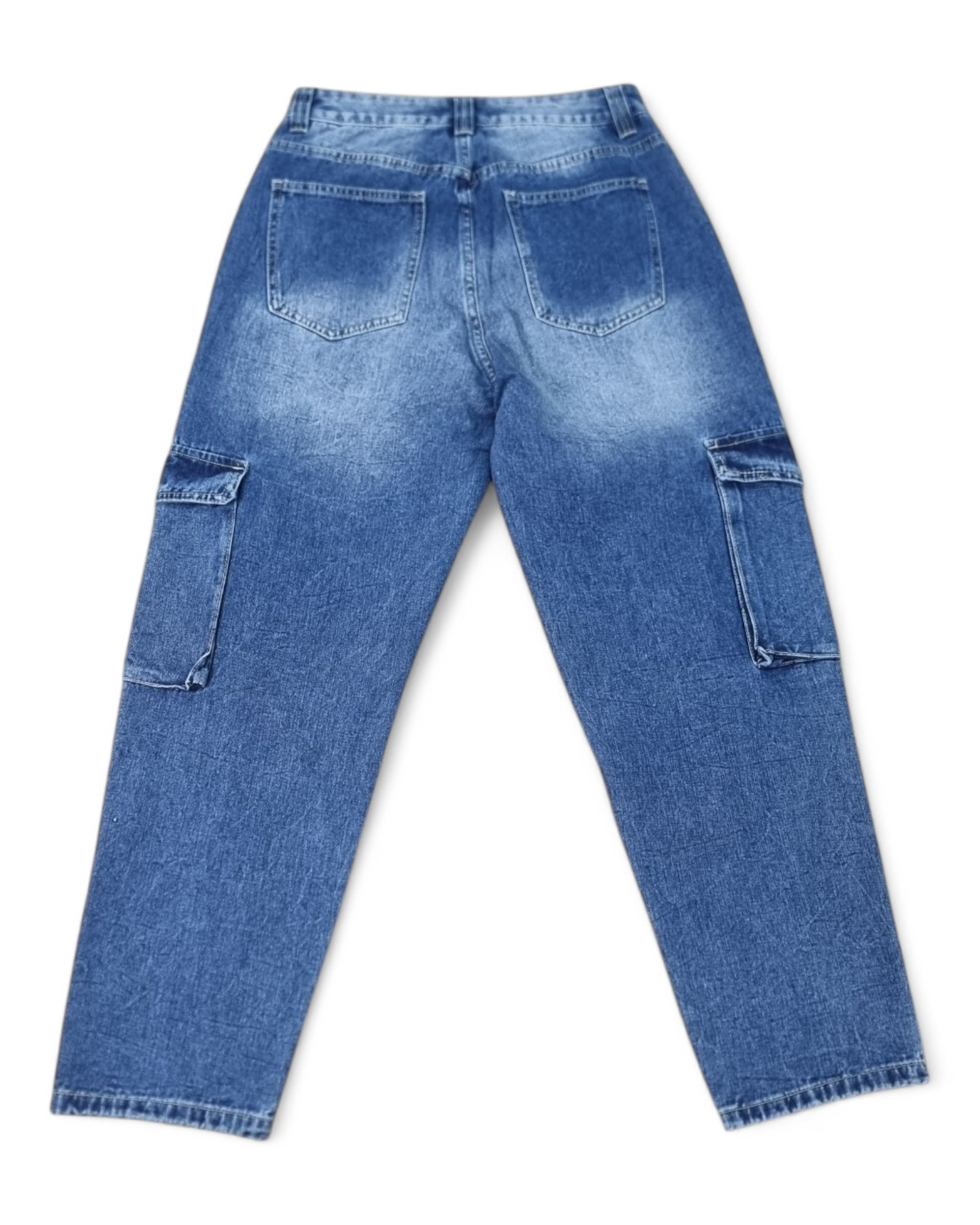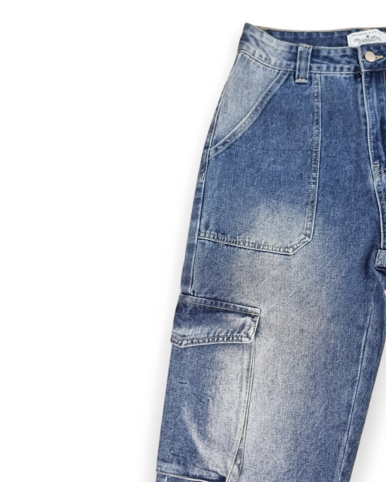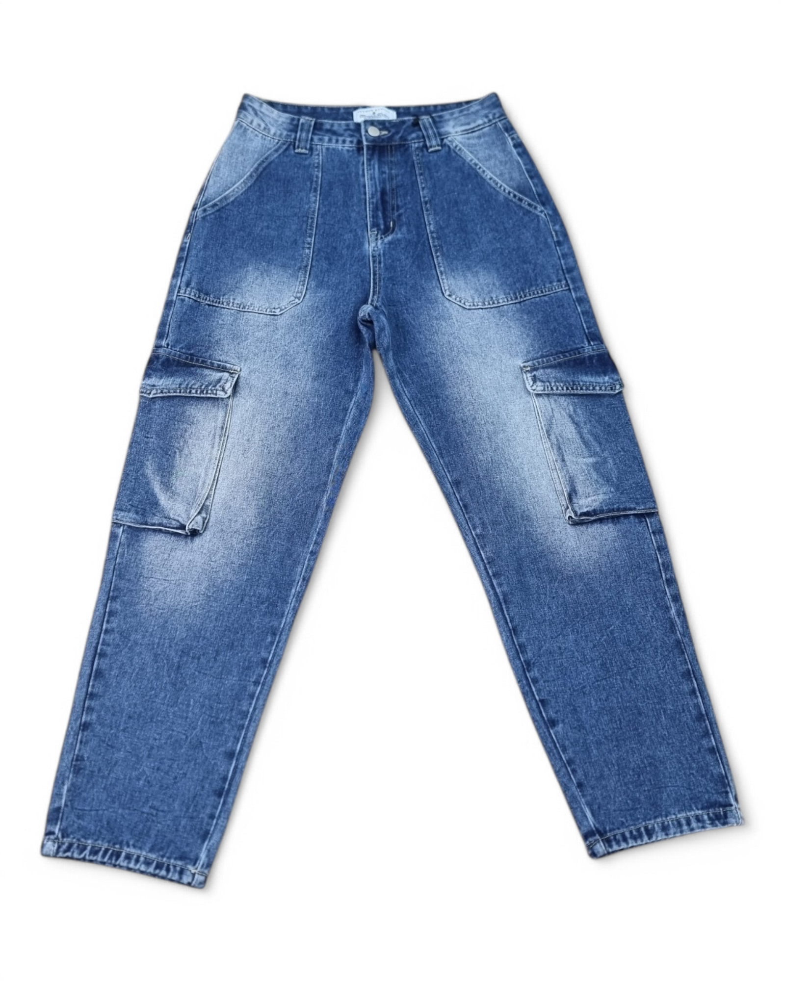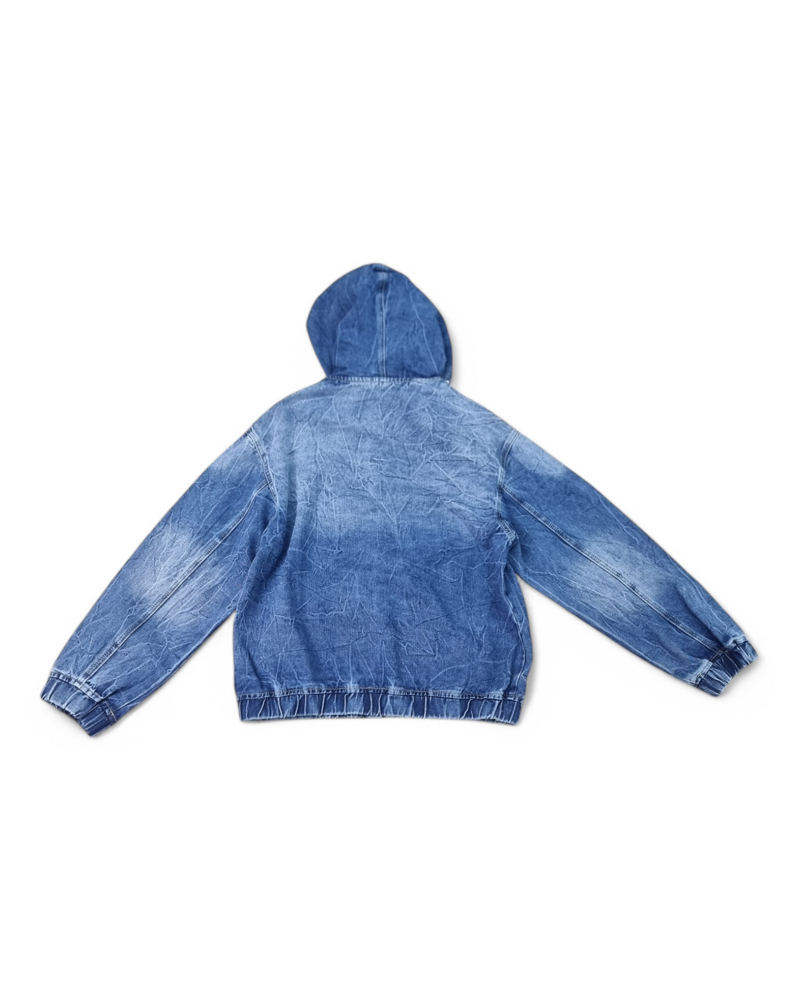 Completo con giubbino con zip e cappuccio e pantalone cargo in denim