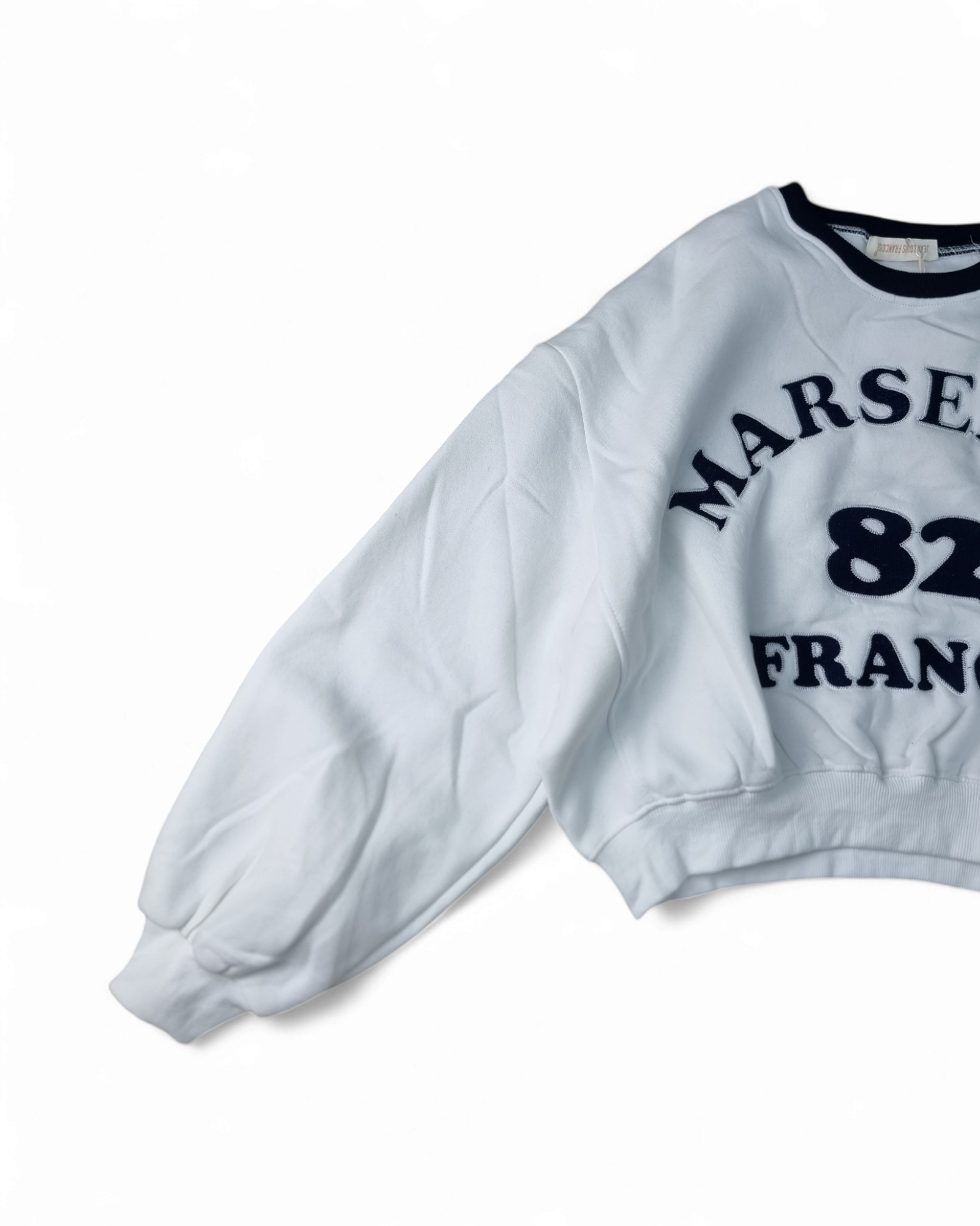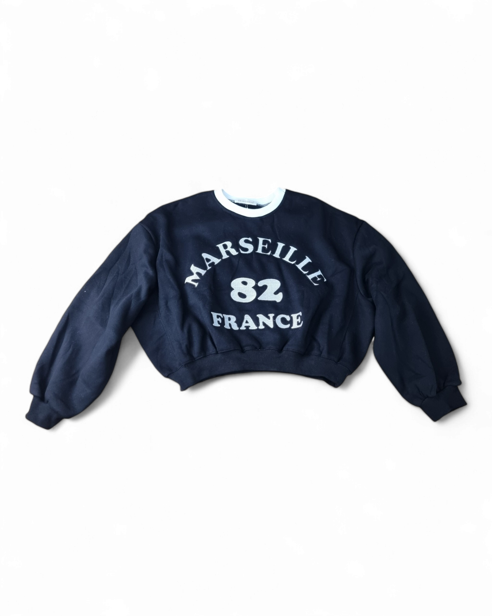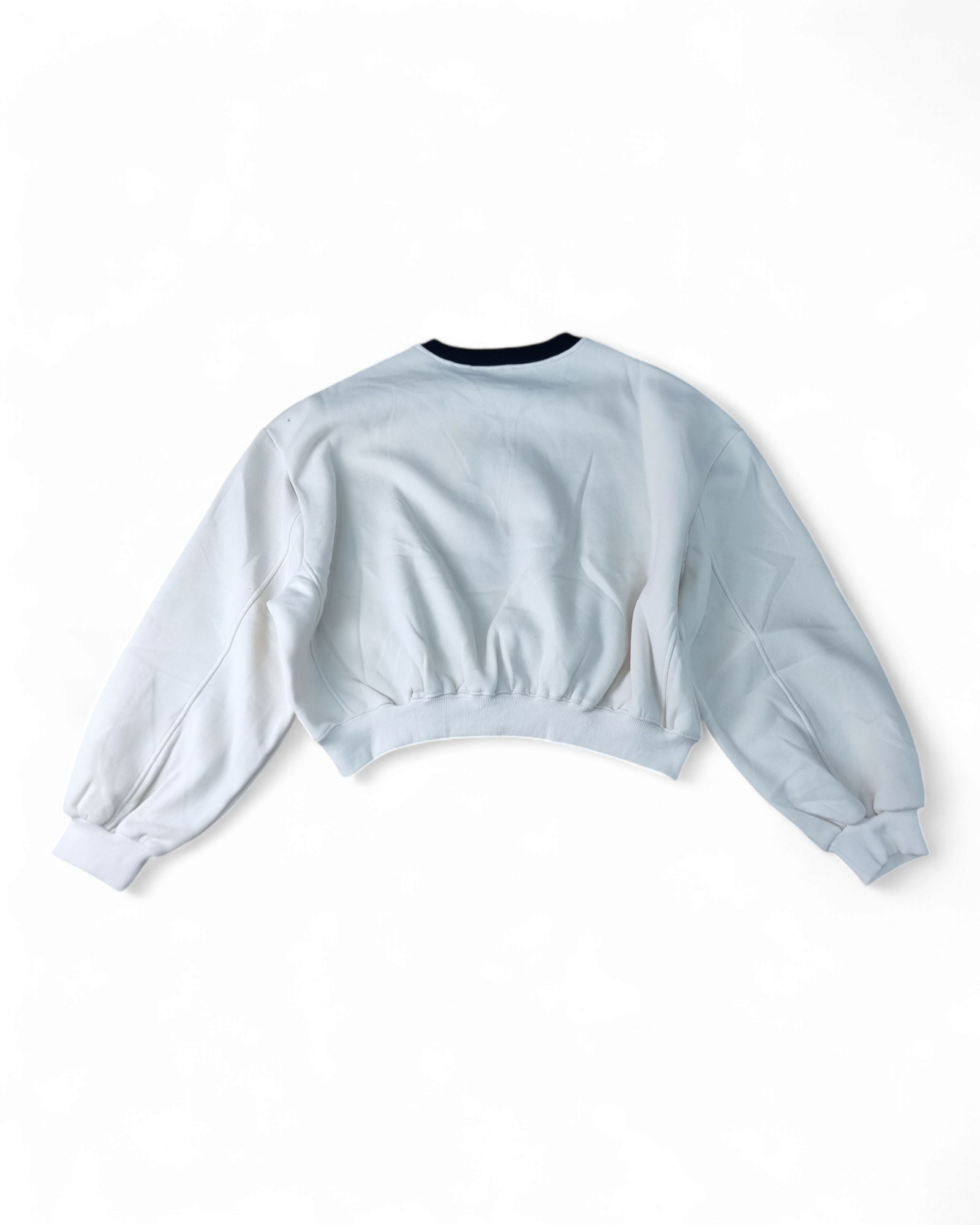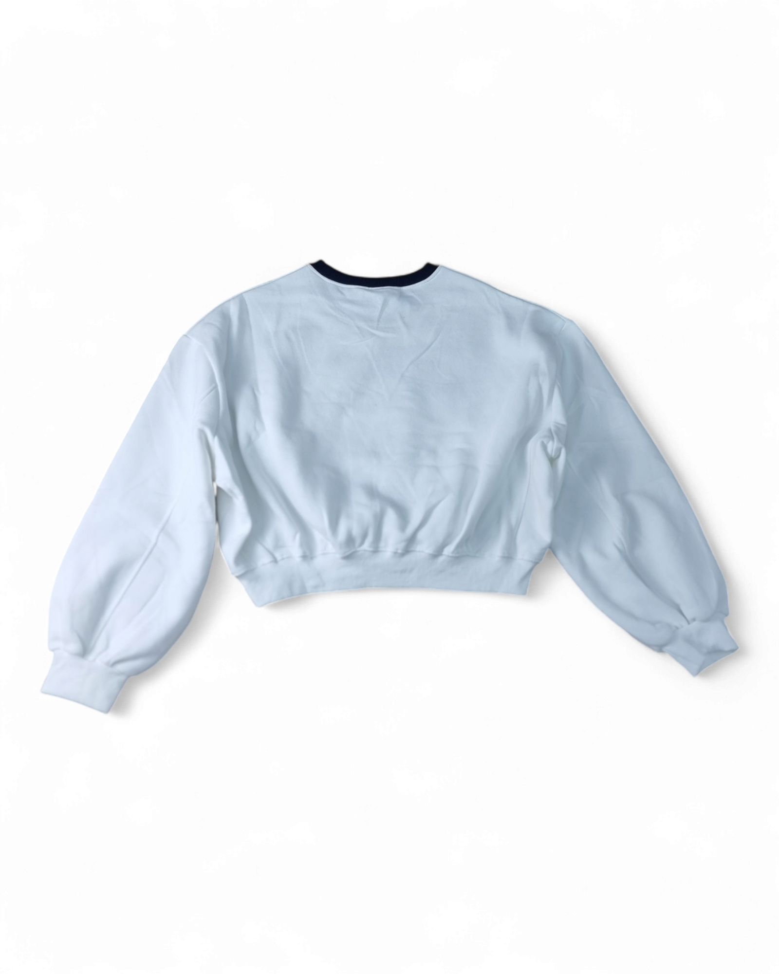 Felpa girocollo corta con stampa anteriore e collo a contrasto