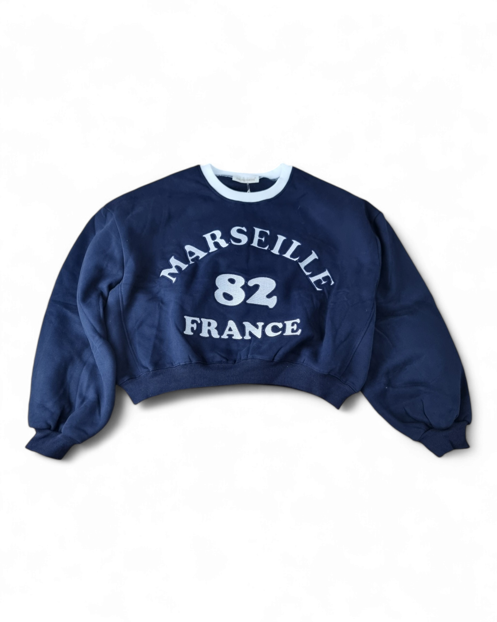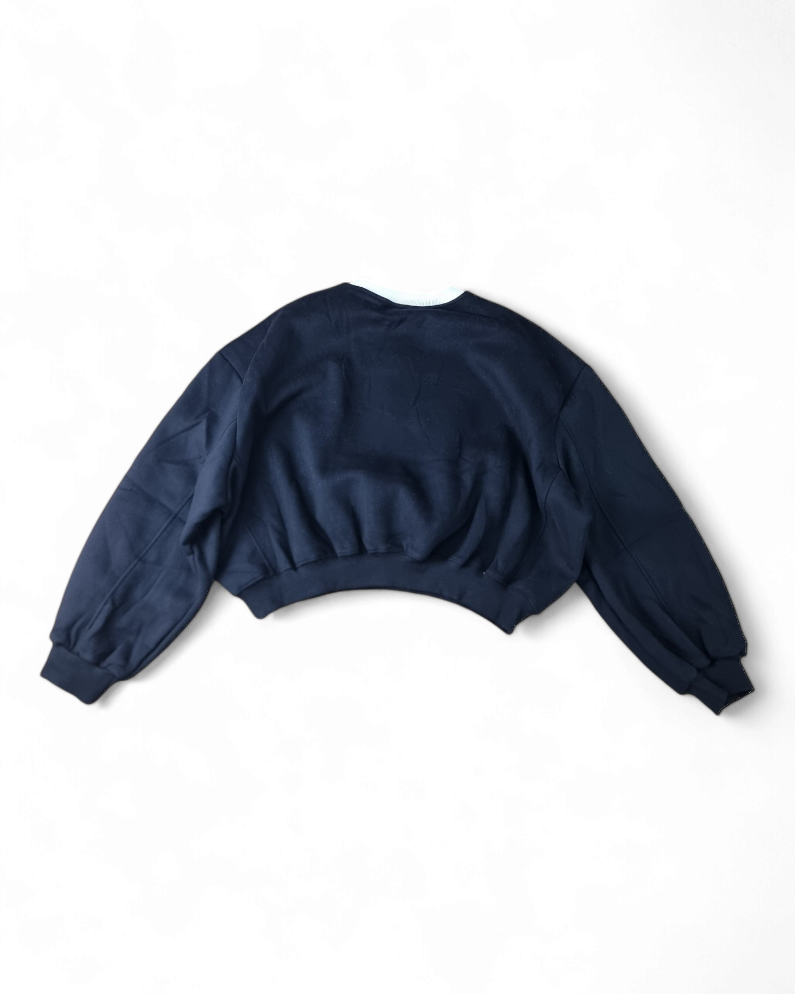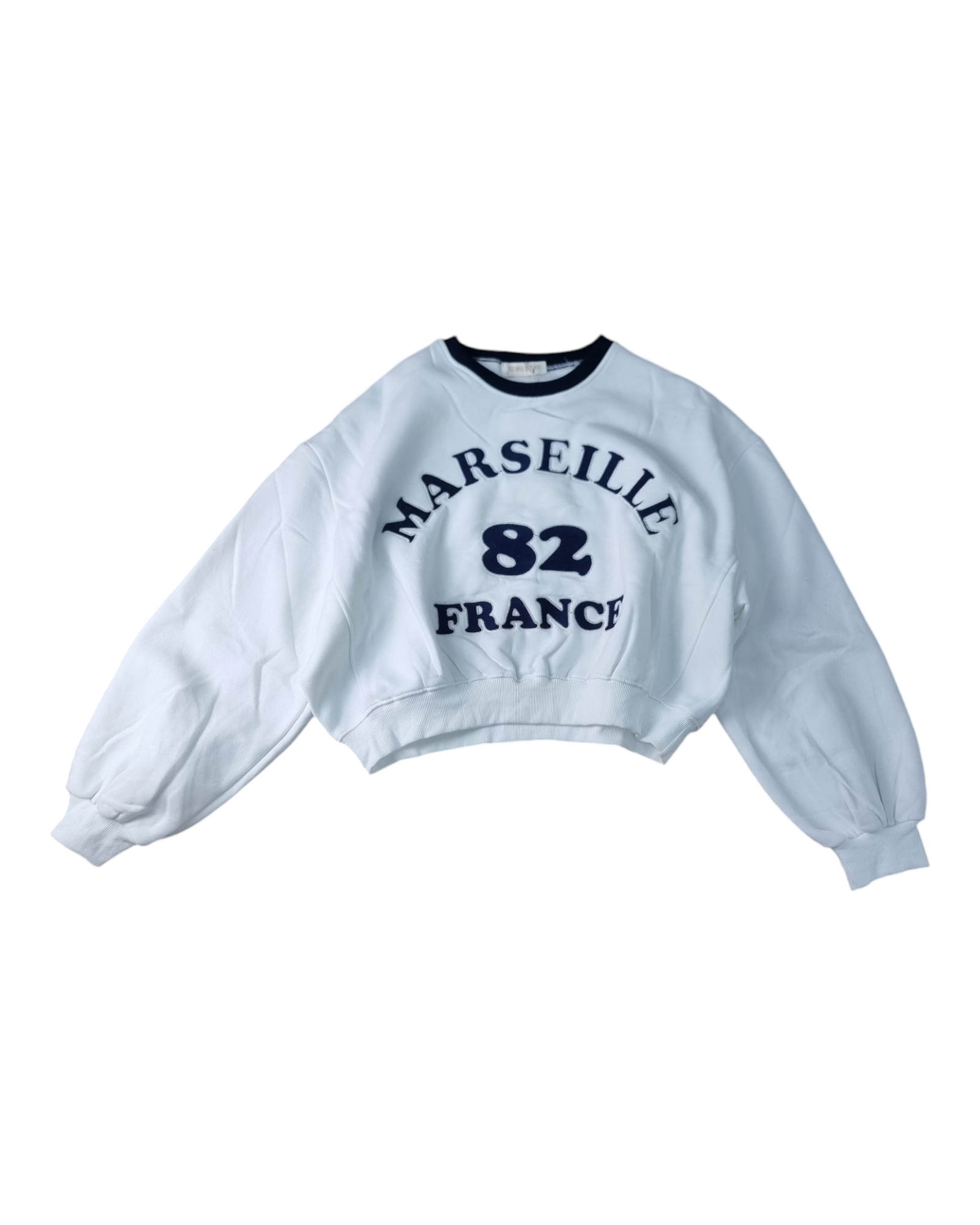 Felpa girocollo corta con stampa anteriore e collo a contrasto