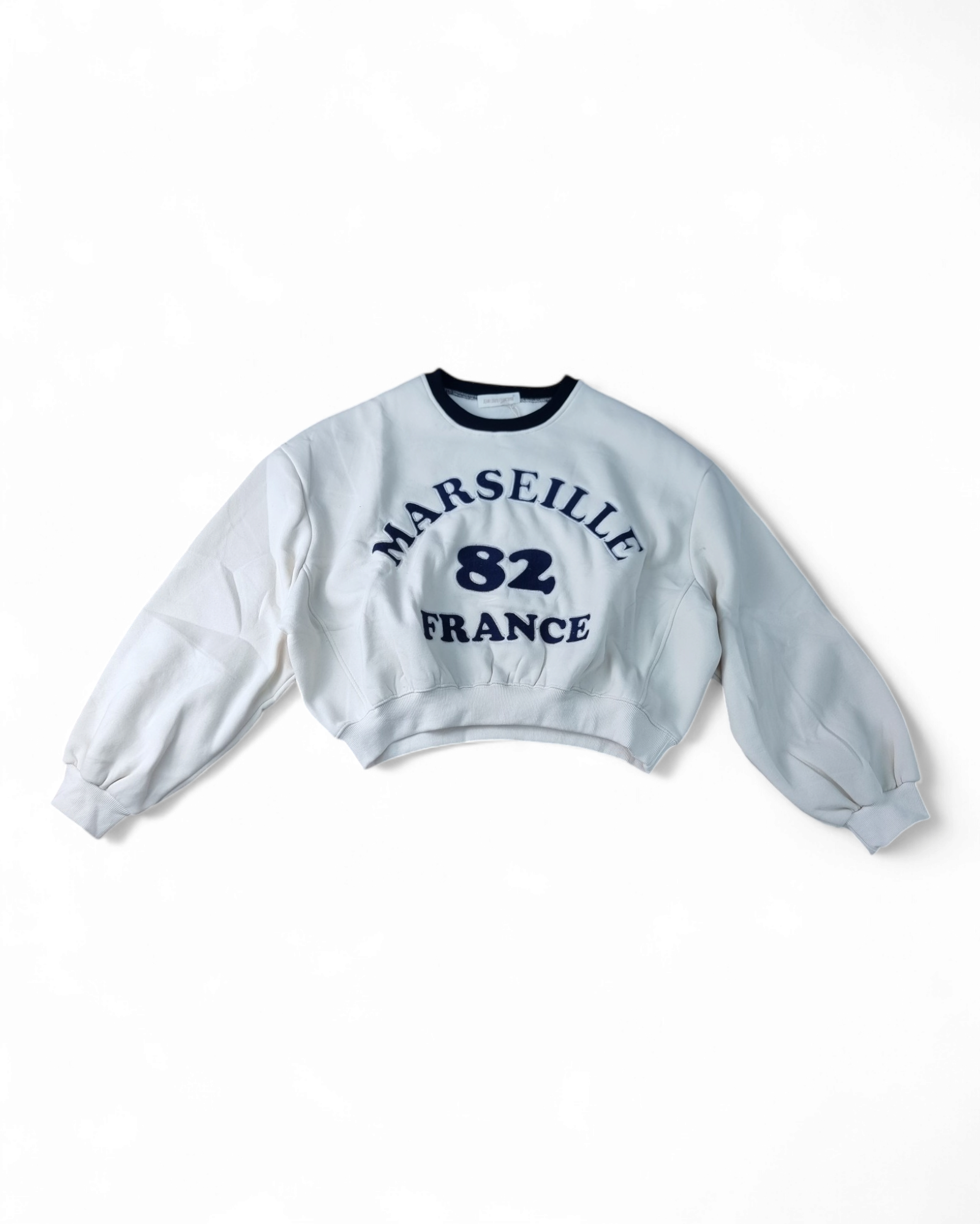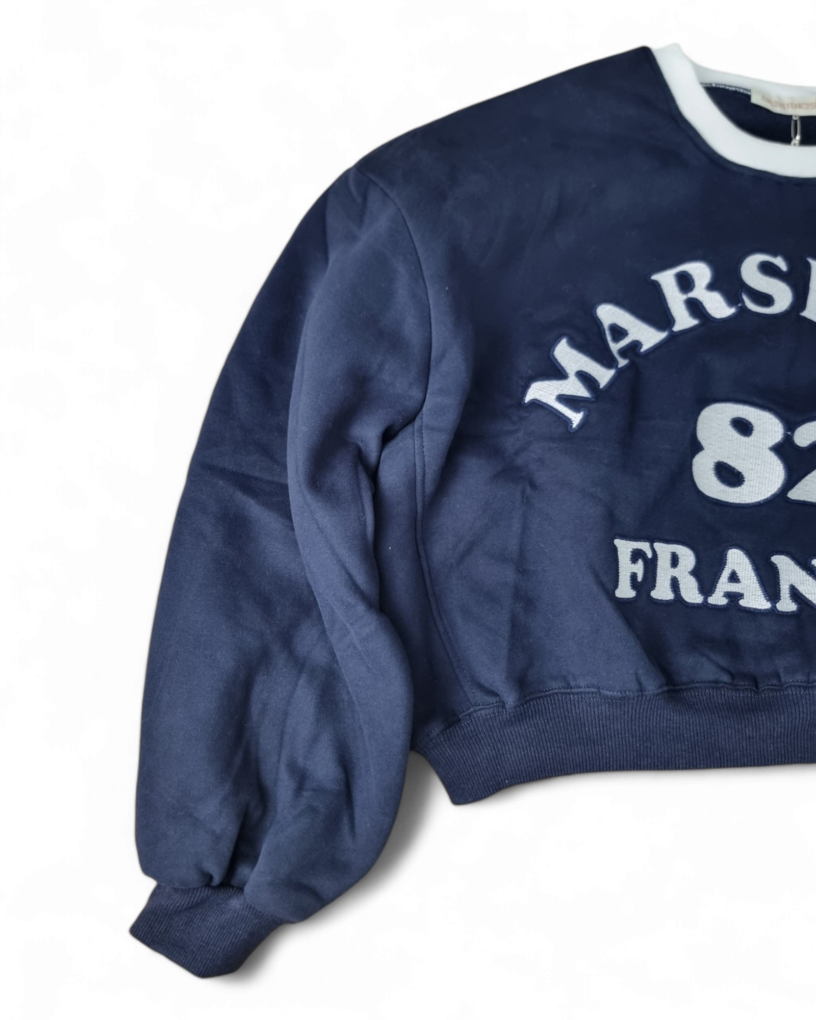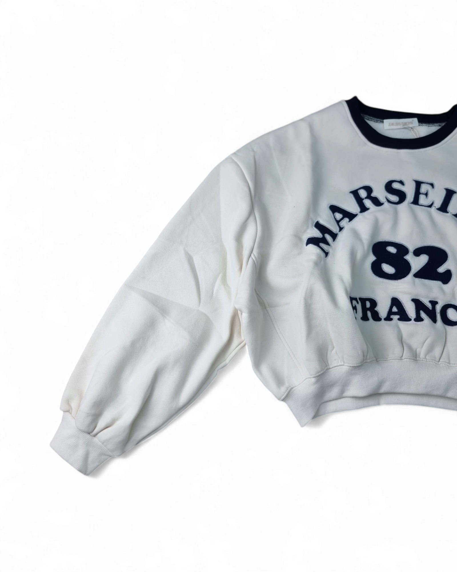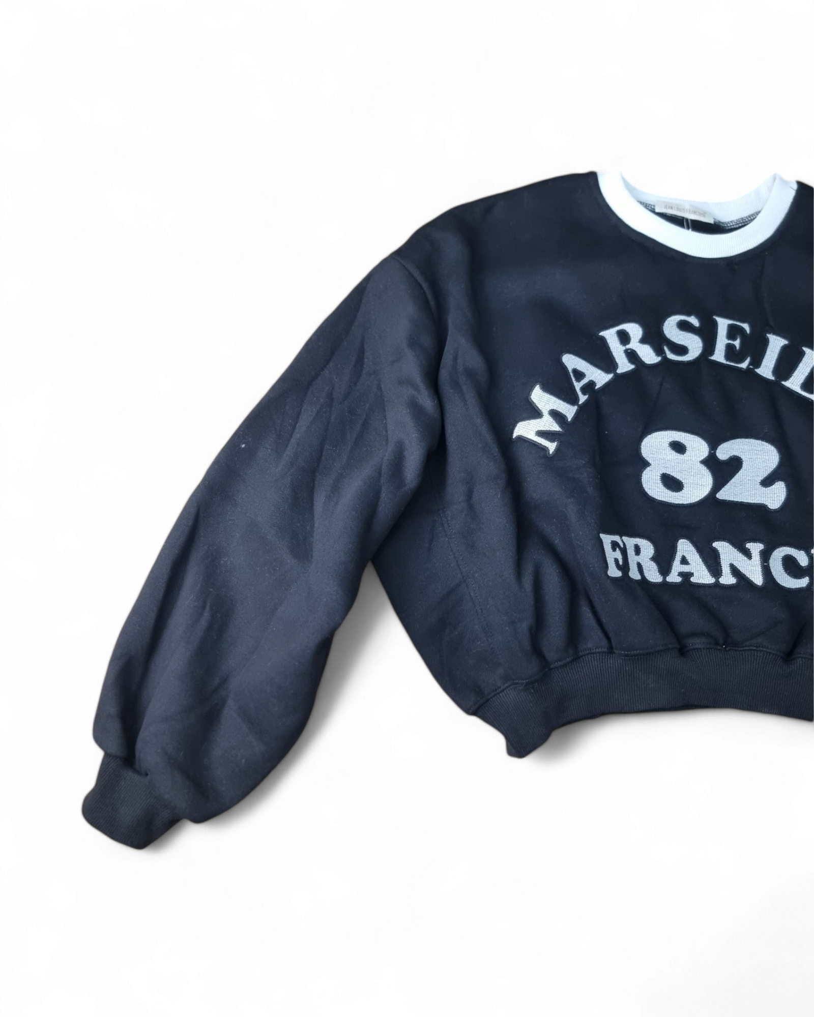 Felpa girocollo corta con stampa anteriore e collo a contrasto